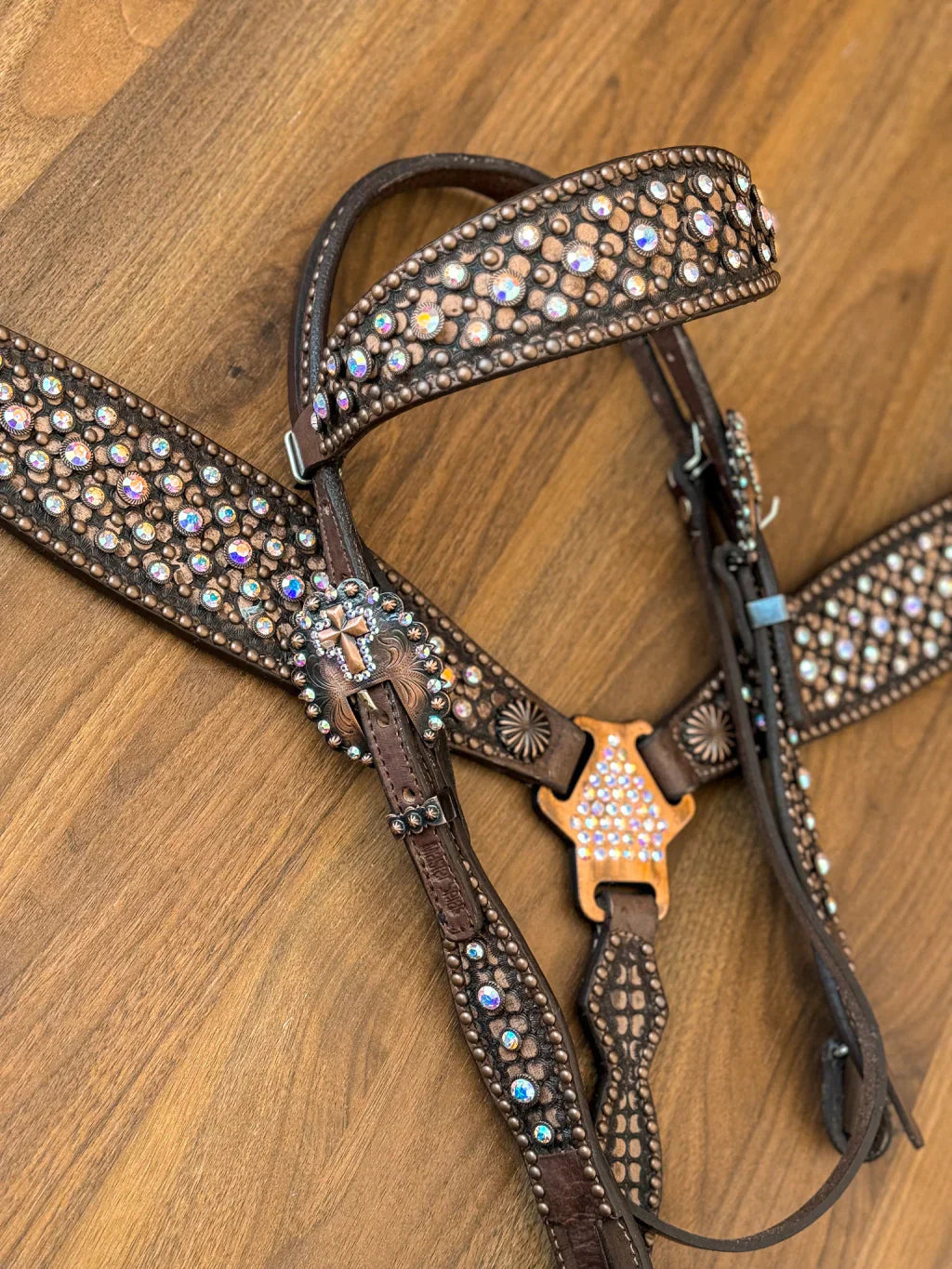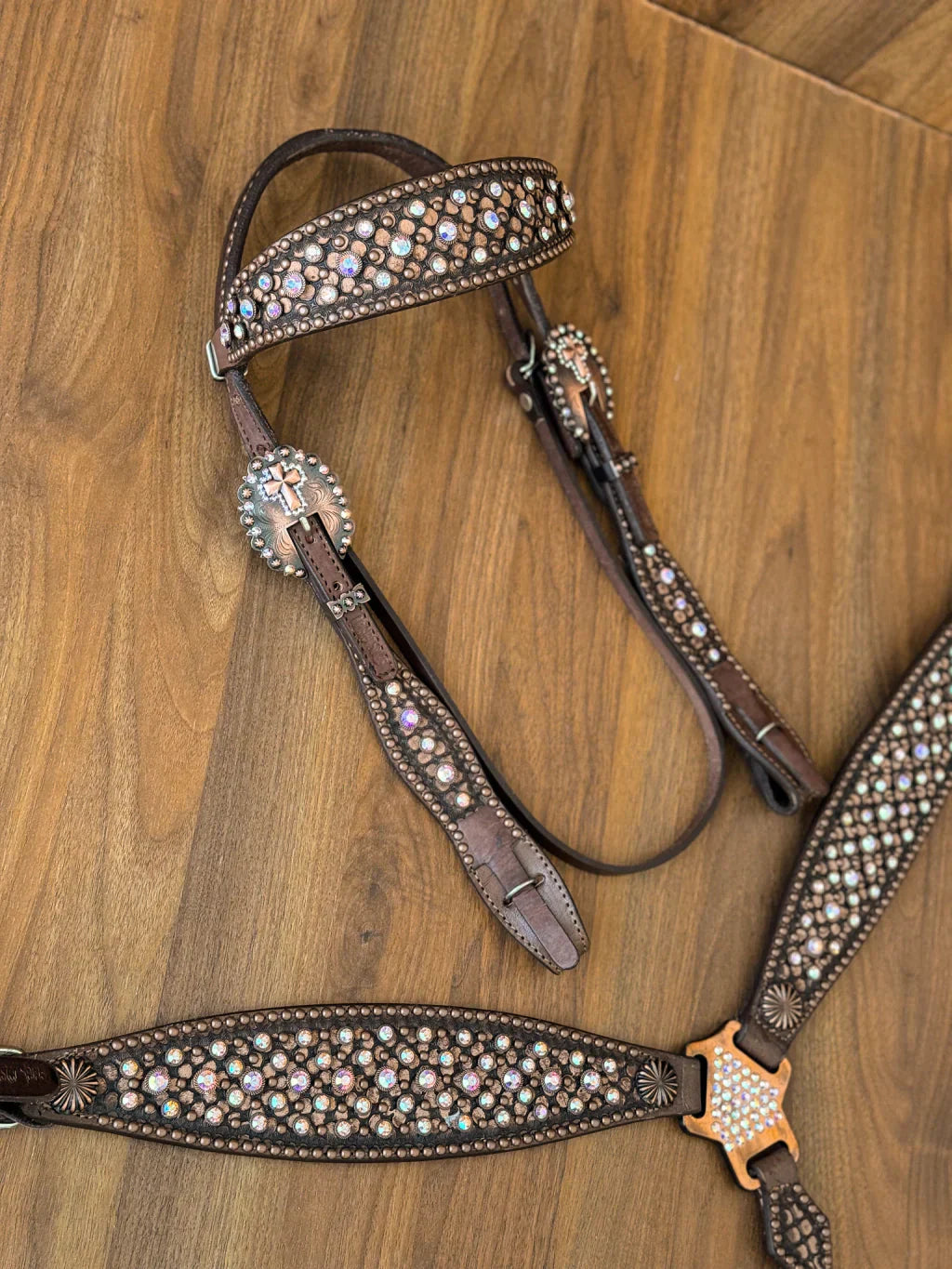 Peitoral e cabeçada Master Selas pronta entrega. Fabricado em couro legítimo com aplicação em strass original.